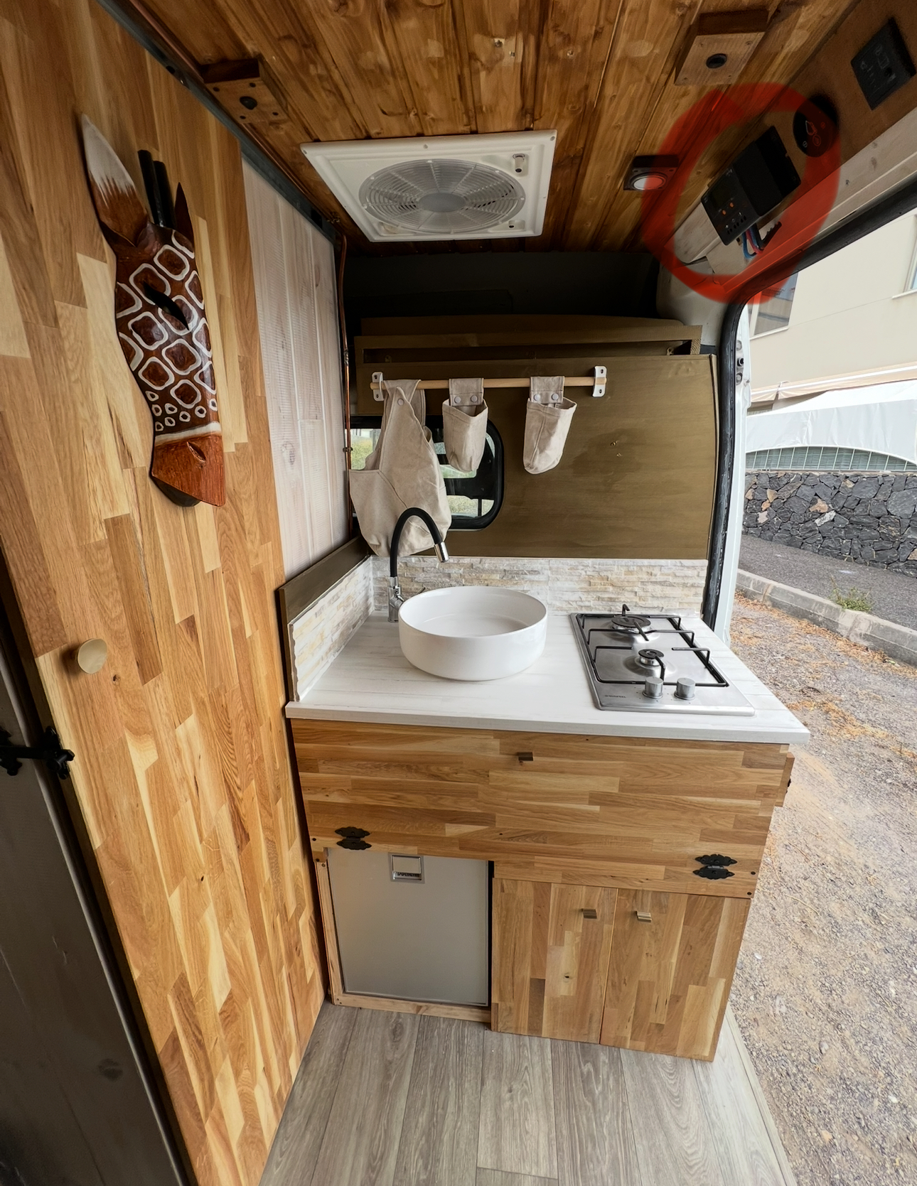 Esta camper hecha a mano es perfecta para explorar la isla con total libertad. Tiene cama doble, espacio extra para un niño, cocina equipada, ducha con agua caliente, panel solar y todo lo necesario para sentirte como en casa. Cómoda, práctica y con mucho encanto, es una forma única de descubrir los rincones más bonitos de la isla.