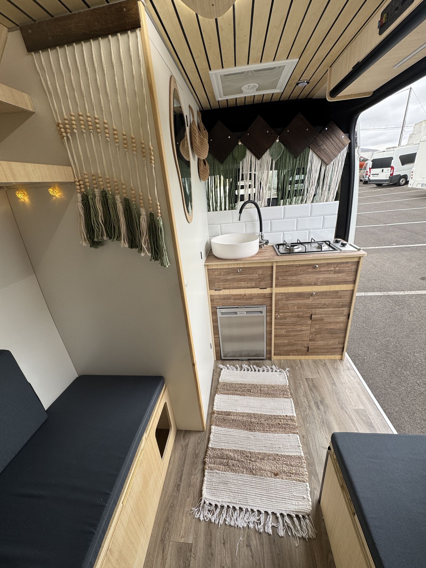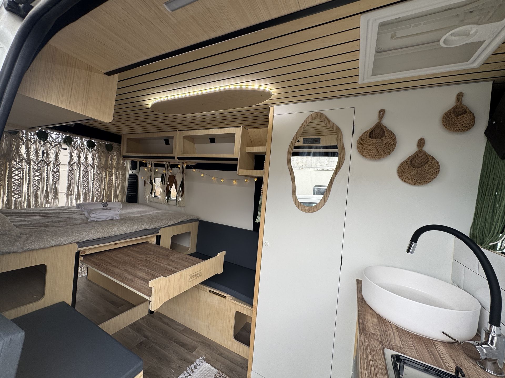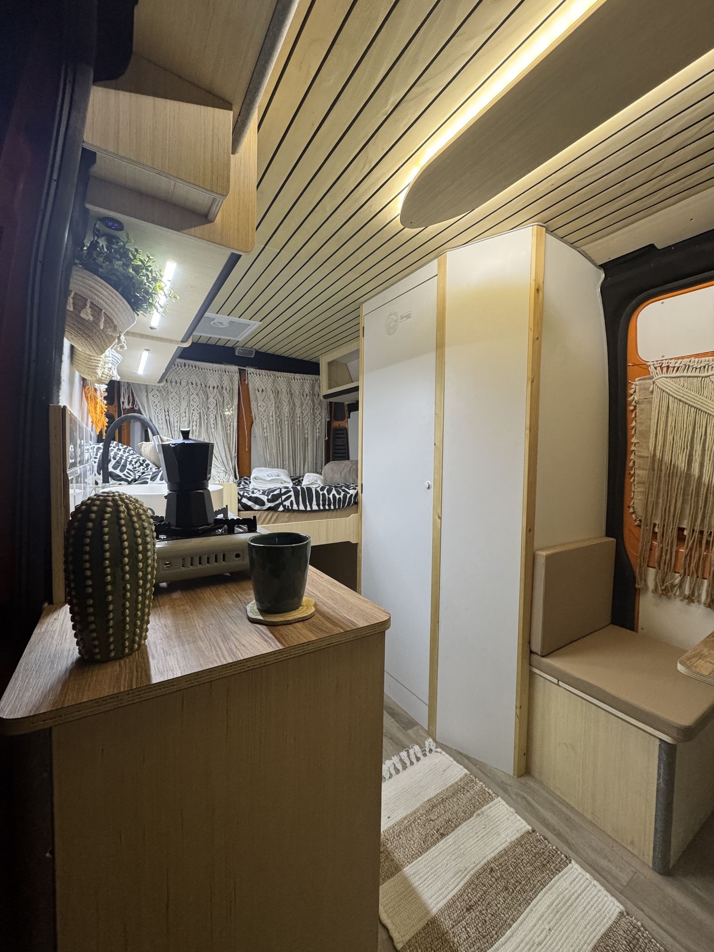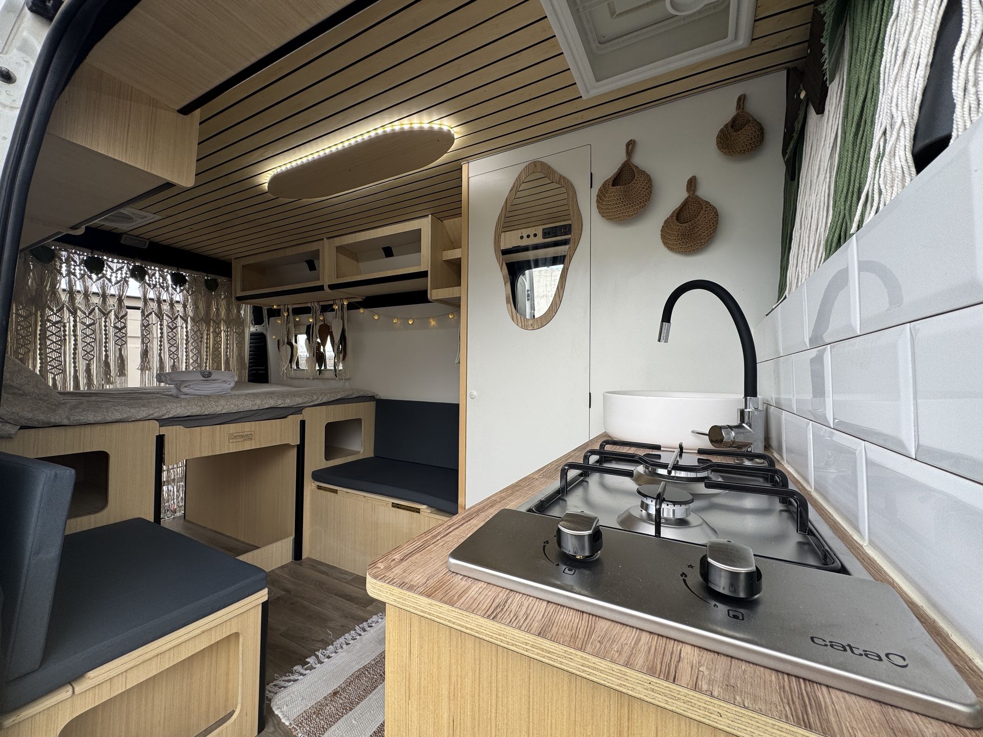 Imagina despertar cada día en un lugar distinto, con vistas al mar, rodeado de naturaleza o en un rincón tranquilo bajo las estrellas. Así es viajar con nuestra camper hecha a mano, un espacio único creado con cariño, pensado para que te sientas como en casa desde el primer momento.